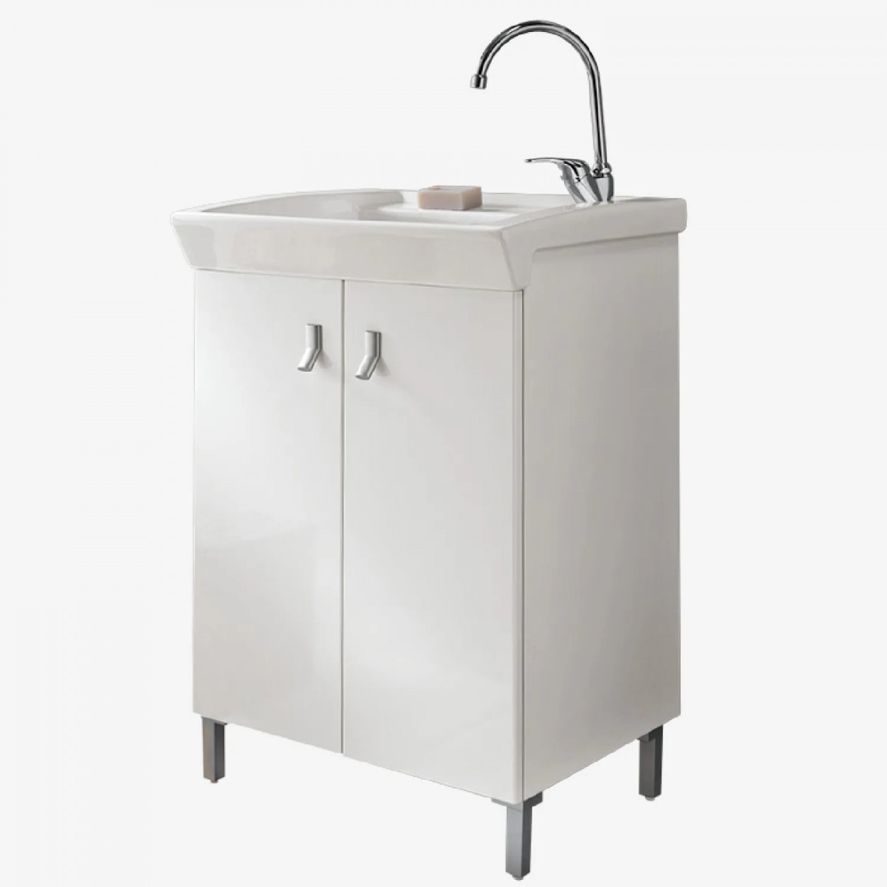 Meglioalge vi presenta Bijoux, il lavatoio per lavanderia con vasca in ceramica e design sagomato, ideale per chi cerca eleganza e funzionalità.