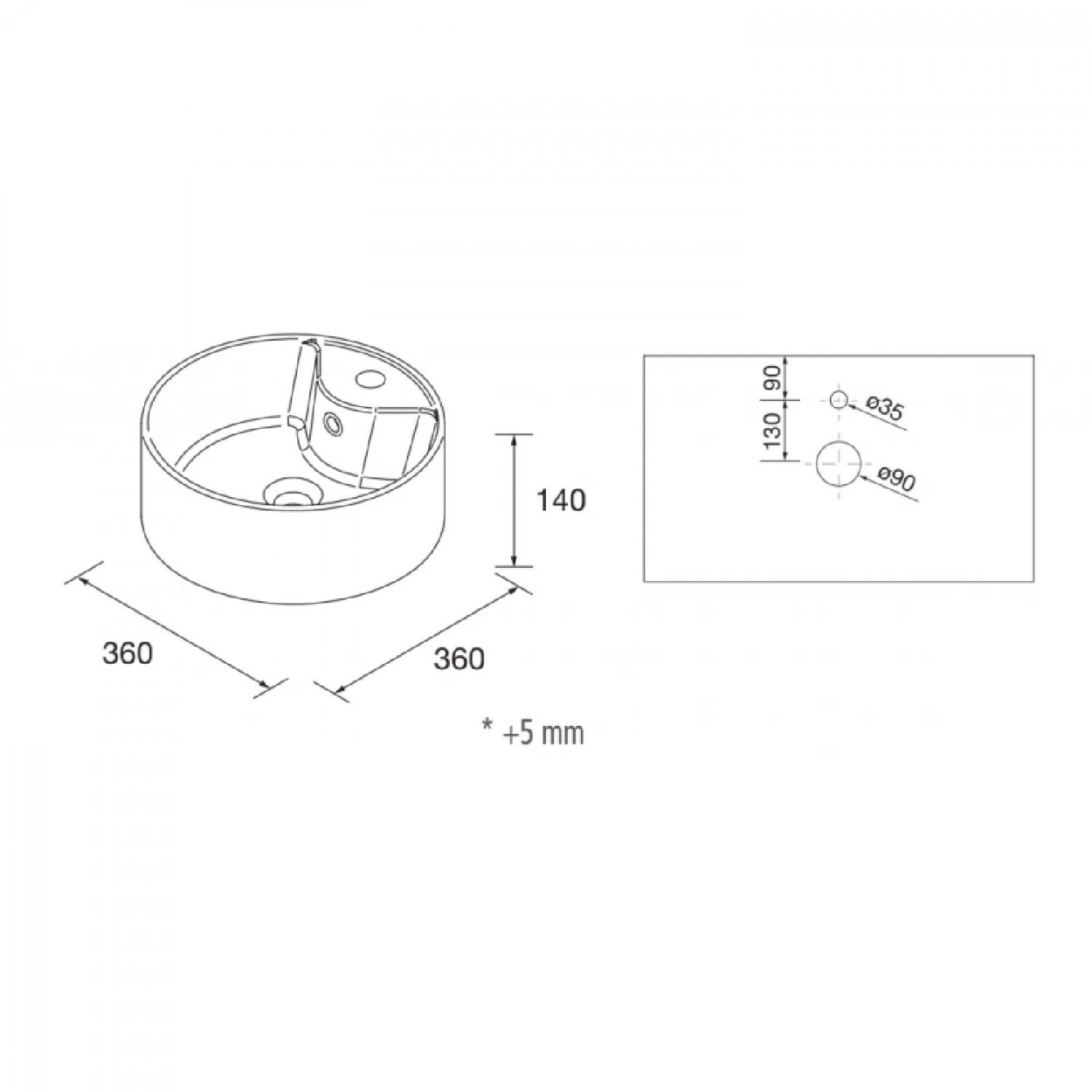 | Misura lavabo | D 36 x H 14 cm |