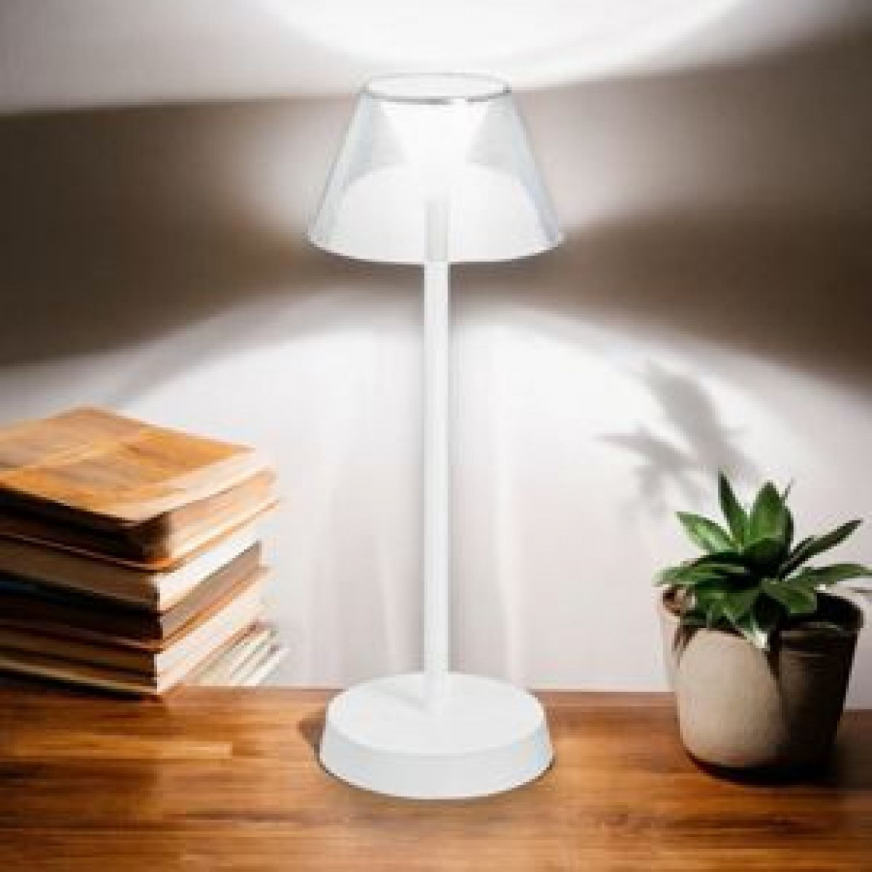 Meglioalge propone la lampada da tavolo Lolita bianco di Ideal Lux: ricaricabile, con autonomia di 14 ore e design elegante in plastica e metallo.