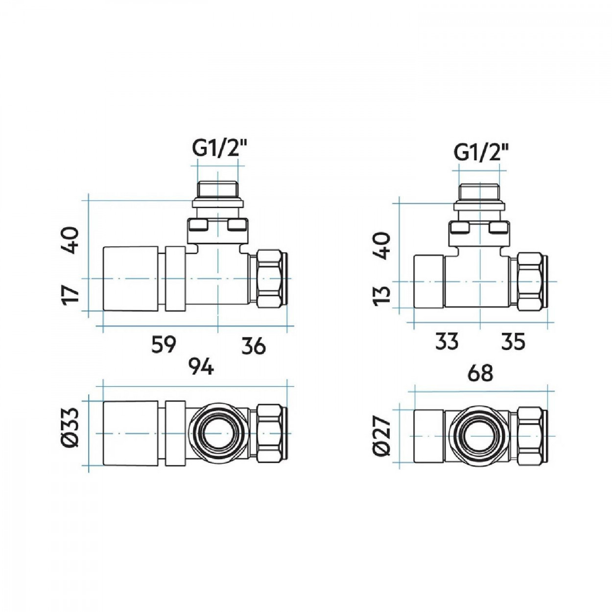 Composto da valvola e detentore a squadro, con pre-regolazione e termostatizzabile, questo kit è essenziale per collegare i radiatori al sistema di riscaldamento. La valvola consente una regolazione manuale del flusso, mentre il detentore isola il radiatore durante le operazioni di manutenzione. Prodotto fornito da Meglioalge.
