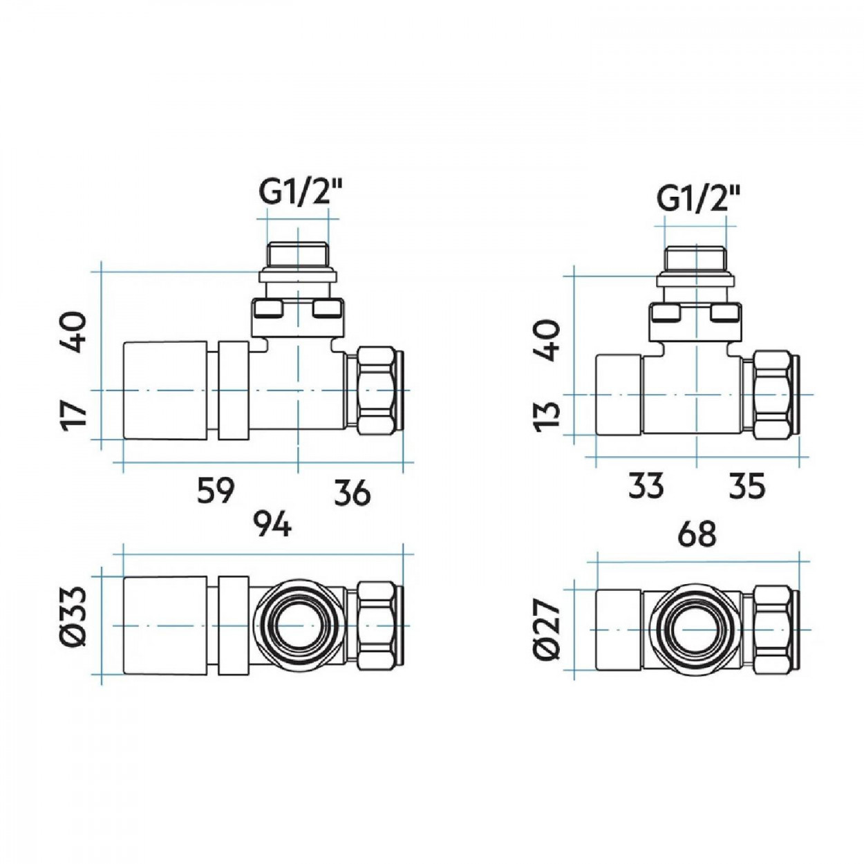 Valvole termostatizzabili e detentori a squadro con attacco rame/multistrato, ideali per il corretto bilanciamento dell’impianto di riscaldamento. Questo sistema permette di regolare il flusso d’acqua in modo manuale o automatico (con testa termostatica, acquistabile a parte), garantendo risparmio energetico e accesso a agevolazioni fiscali. Prodotto fornito da Meglioalge.