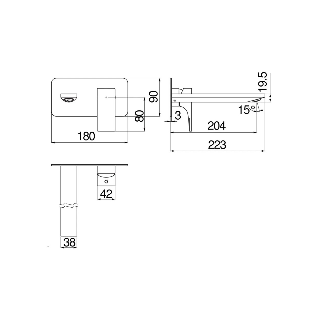 Il miscelatore lavabo a parete con bocca lunga Nobili della linea Seven unisce linee rigorose e profili sinuosi. Un design sofisticato, ideale per adattarsi a qualsiasi ambiente con eleganza e funzionalità. Necessario per installazione parte incasso Allbox (WE00198).