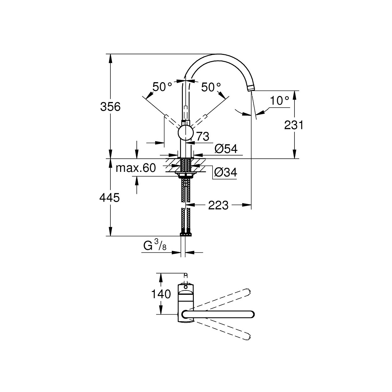 Scopri il rubinetto Minta di GROHE: stile e prestazioni con bocca a C, rotazione regolabile a 0°, 150° o 360°, tecnologia SilkMove e finitura cromo StarLight. Installazione facile e rapida.