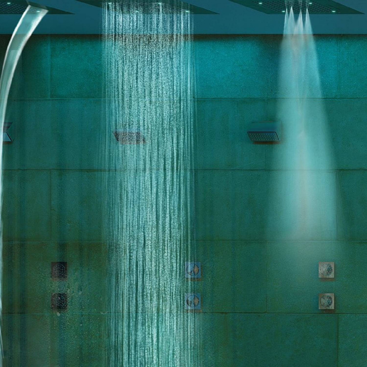 Questo soffione da controsoffitto offre una straordinaria esperienza grazie ai 3 getti (pioggia, cascata e pettine) e alle luci LED RGB con tastiera di comando. Dotato di Easy Clean System per una pulizia agevole, unisce design moderno e funzionalità. Prodotto fornito da Meglioalge.