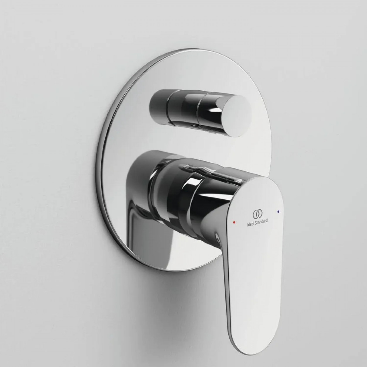 Miscelatore monocomando ad incasso per vasca/doccia con deviatore della collezione Cerafine O, finitura cromo – Ideal Standard. Elegante e funzionale, dotato di attacchi di alimentazione.