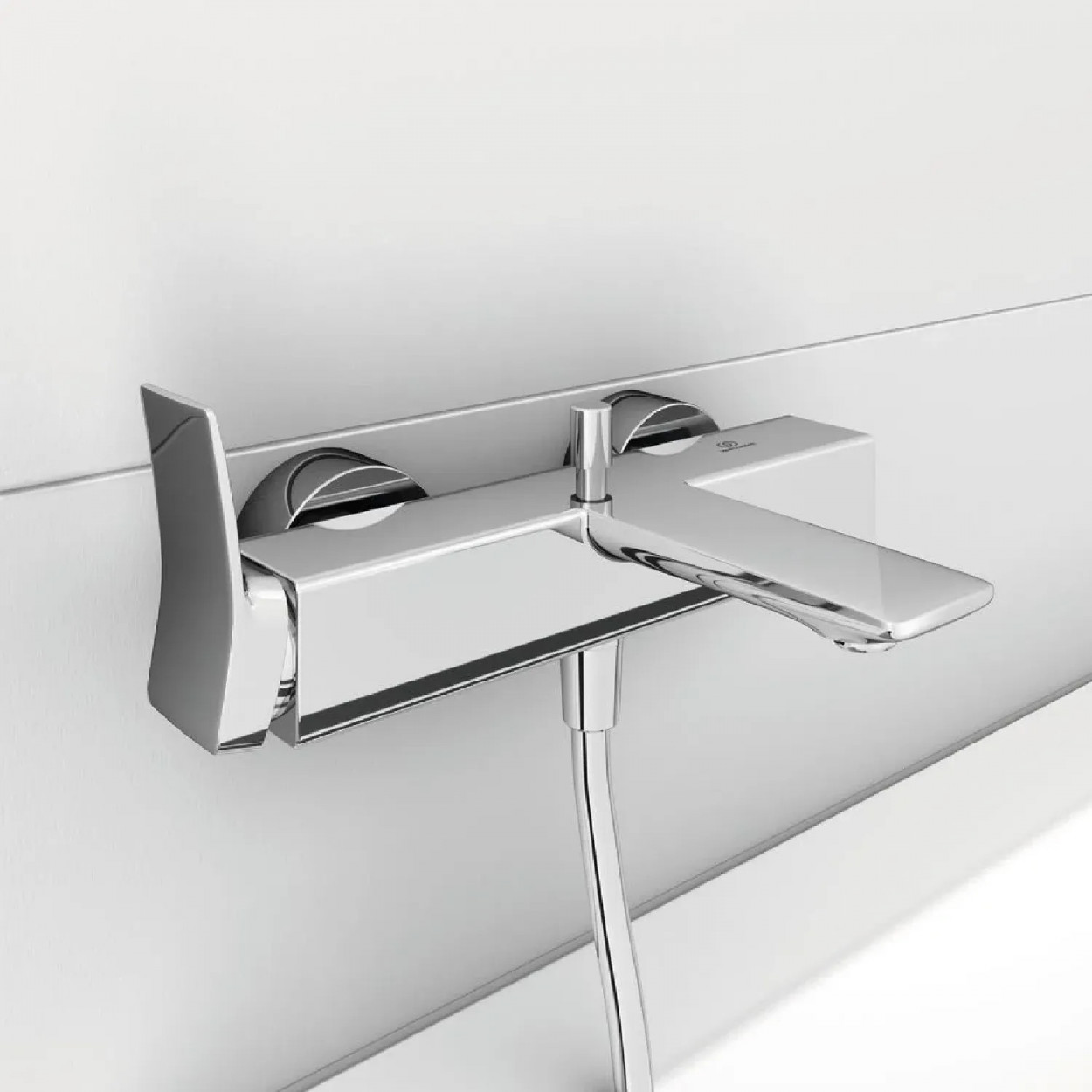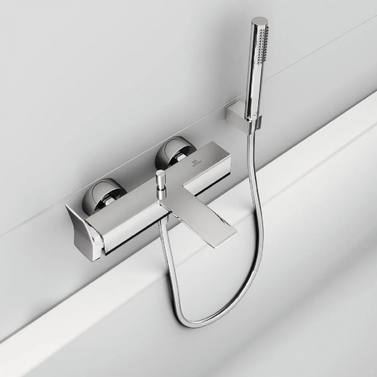 Meglioalge presenta il miscelatore Conca di Ideal Standard per vasca/doccia, in cromo, con doccetta, supporto fisso e flessibile da 160 cm per il massimo comfort.