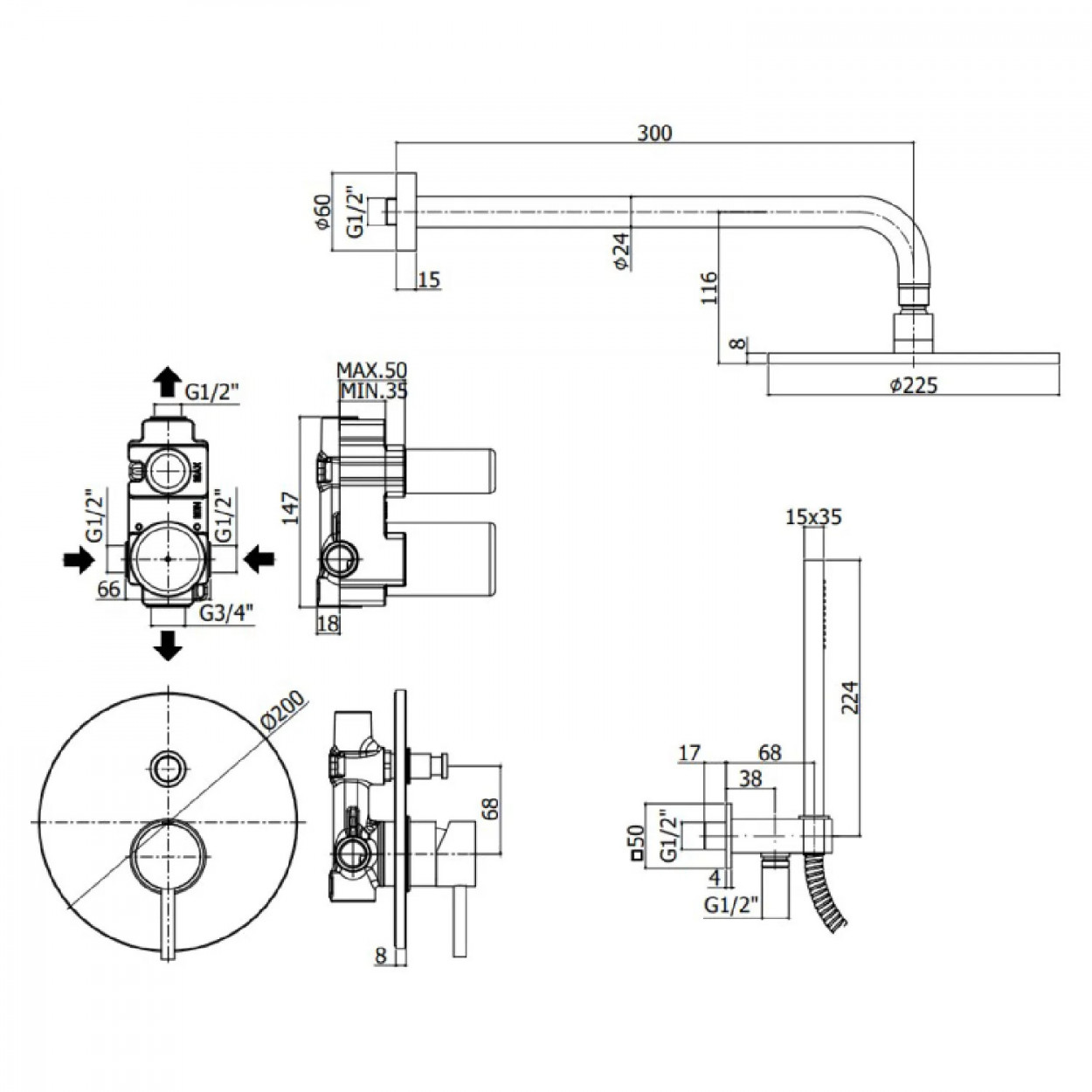 | Set doccia | Master monogetto, flessibile l. 1500mm e presa acqua incorporata |